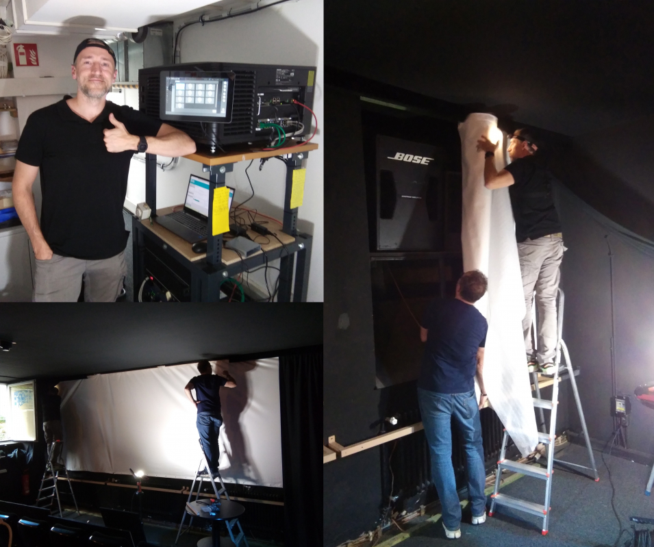 Unser Kinotechniker Igor freut sich mit uns über den reibungslosen Aufbau des neuen Laserprojektors und der neuen Leinwand. Mit der neuen Generation der Projektortechnik ist ZOOM für die Zukunft gut gerüstet. Möglich wurde es durch die Unterstützung der FFA (Filmförderanstalt). Der alte Projektor wird übrigens weiterhin beim Open Air Kino zum Einsatz kommen.