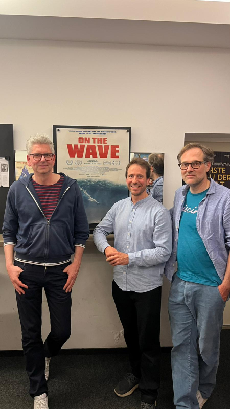Kameramann Johannes Imdahl (links) und Regisseur Peter Wolf (rechts) stellten ihren Film ON THE WAVE vor. Thorsten Kleinschmidt (Mitte) vom ZOOM Team moderierte das Gespräch.
